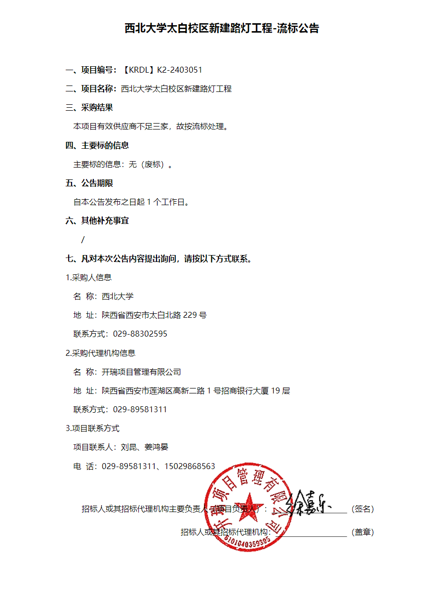 开云网页版登录入口太白校区新建路灯工程流标公告