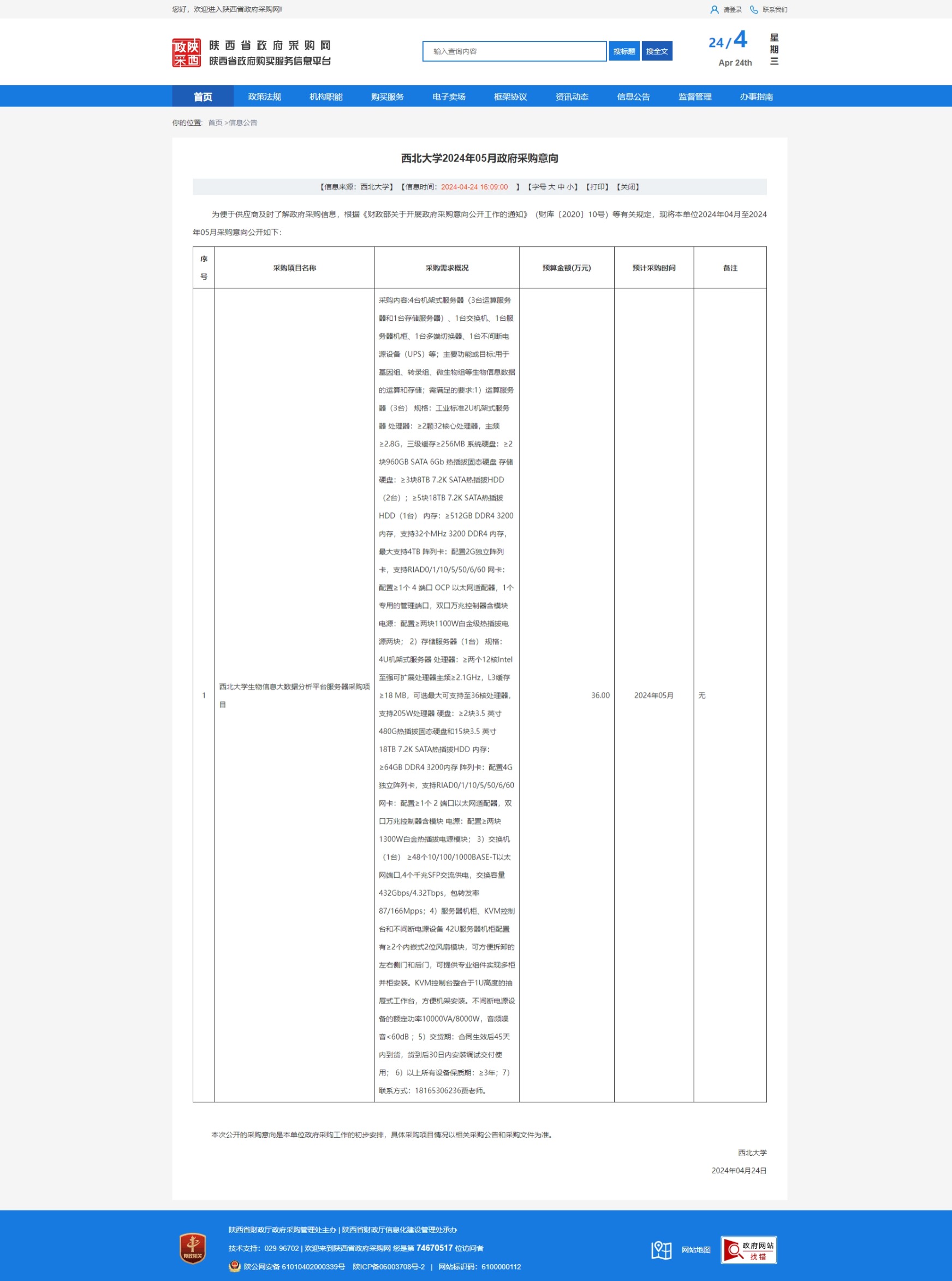 开云网页版登录入口2024年05月政府采购意向 作者: 编辑:采购与招标办公室 时间:2024-04-24 原公告链接:https://www.ccgp-shaanxi.gov.cn/freecms/site/shaanxi/ggxx/info/2024/8a69c67a8f0e0cfb018f0e3fa1d20f61.html?noticeType=59¬iceId=66e64df3-0213-11ef-b8b6-08c0eb20c666