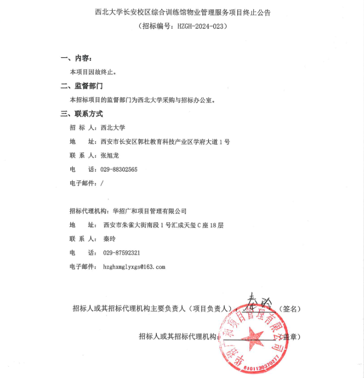 开云网页版登录入口长安校区综合训练馆物业管理服务项目终止公告