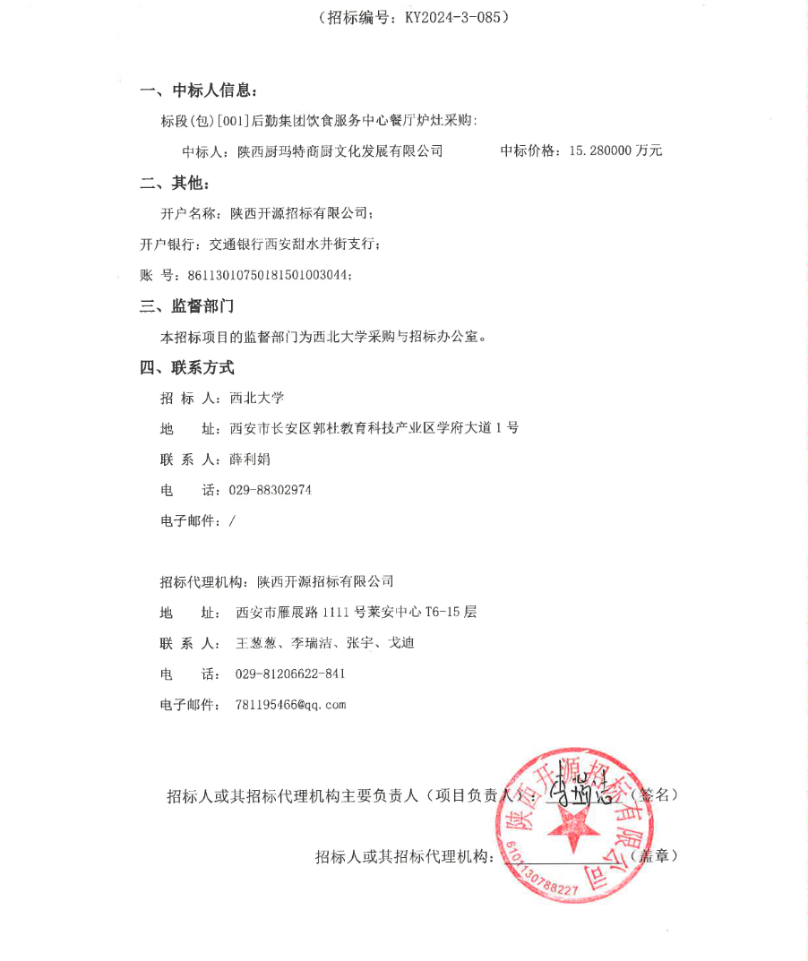 开云网页版登录入口后勤集团饮食服务中心餐厅炉灶采购项目中标结果公示 作者: 编辑:采购与招标办公室 时间:2024-05-30 原公告链接:http://bulletin.sntba.com/resultBulletin/2024-05-29/1450382.html