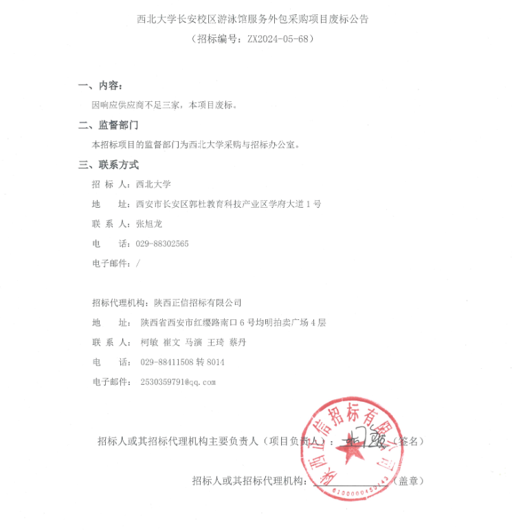 开云网页版登录入口长安校区游泳馆服务外包采购项目废标公告
