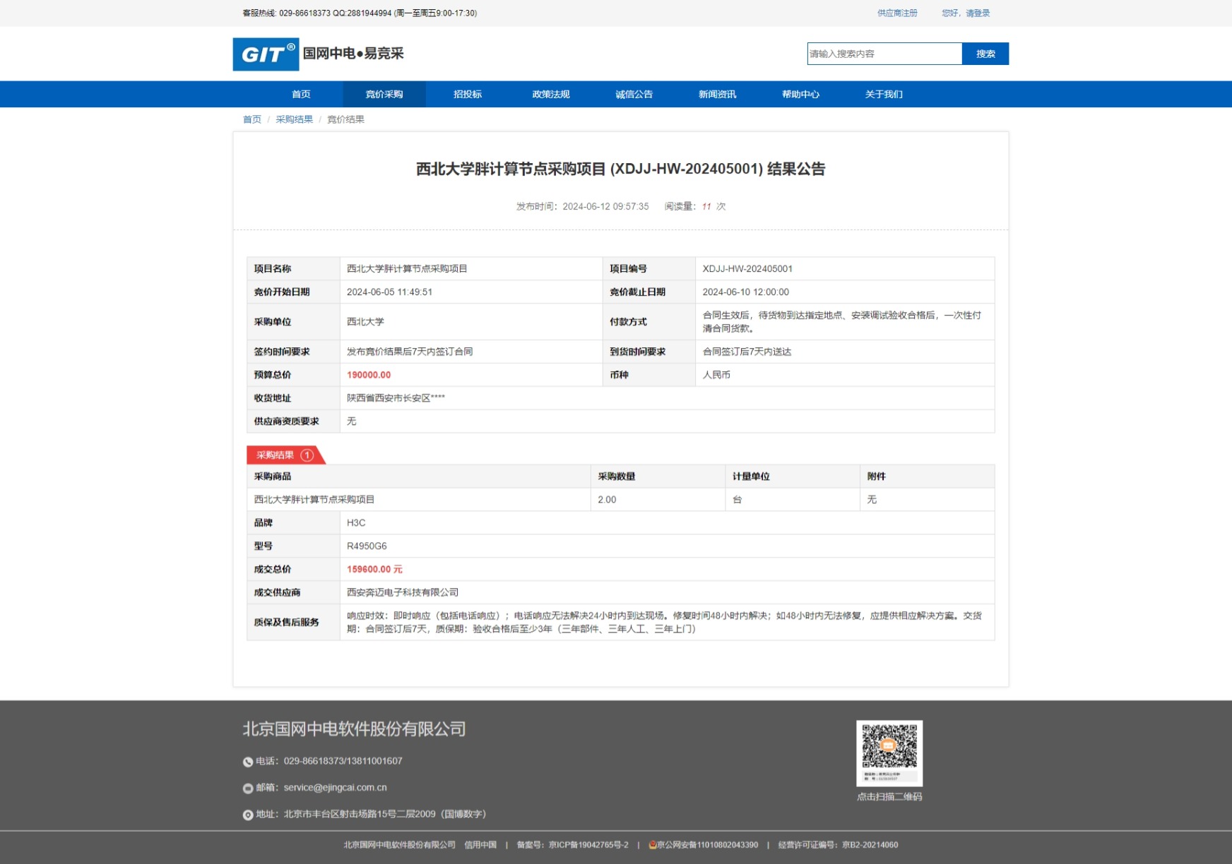 开云网页版登录入口胖计算节点采购项目 (XDJJ-HW-202405001)竞价结果公告 作者: 编辑:采购与招标办公室 时间:2024-06-12 原公告链接:https://www.ejingcai.com.cn/site/bidding/detail/10930