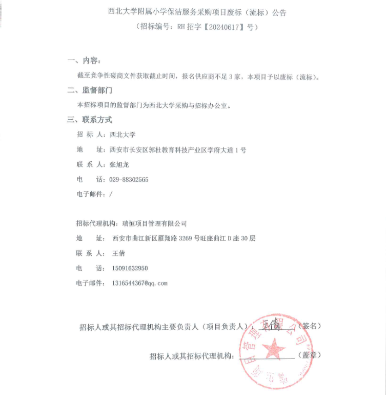 开云网页版登录入口附属小学保洁服务采购项目废标(流标)公告