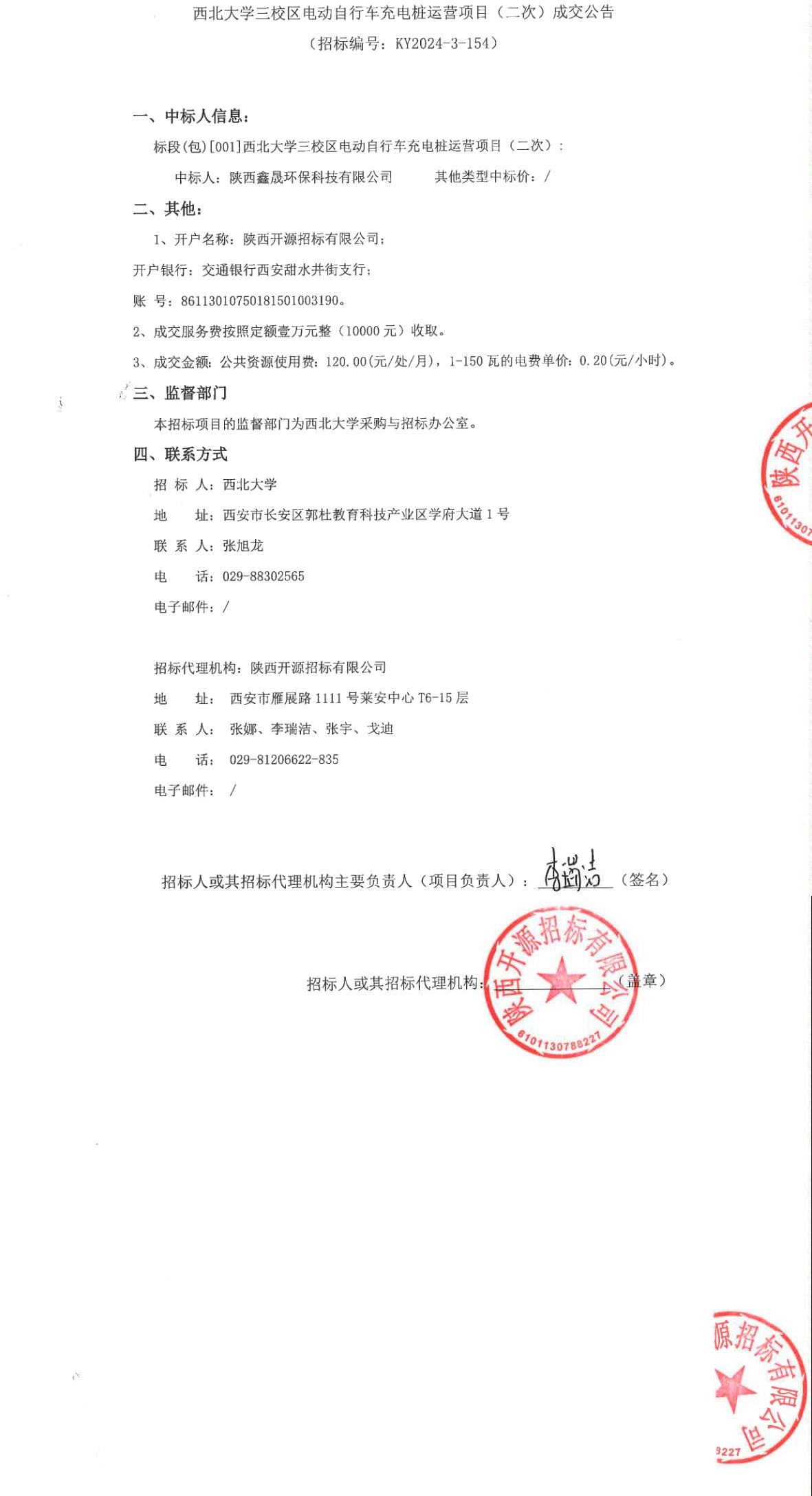 开云网页版登录入口三校区电动自行车充电桩运营项目(二次)成交公告