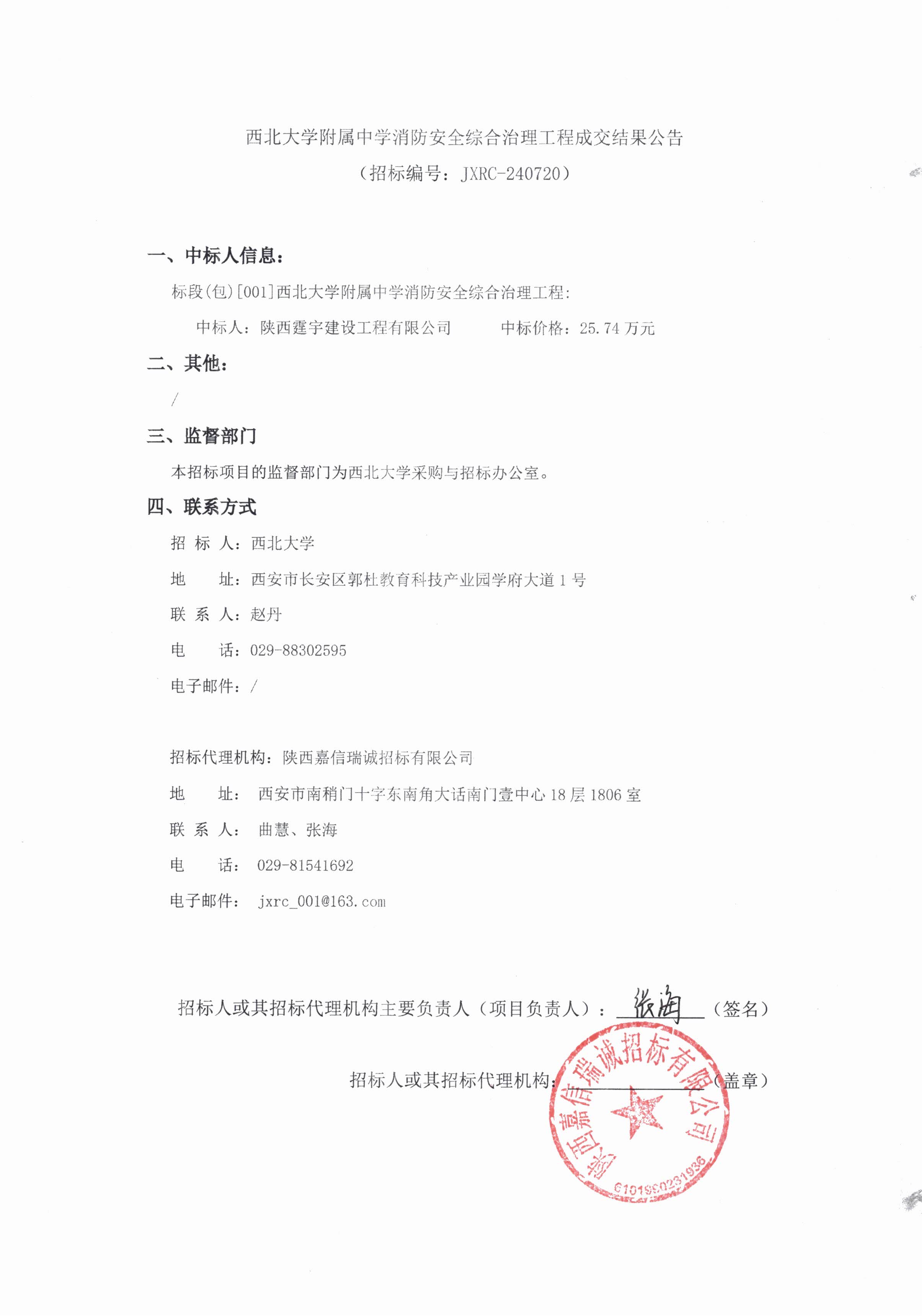 开云网页版登录入口附属中学消防安全综合治理工程成交结果公告