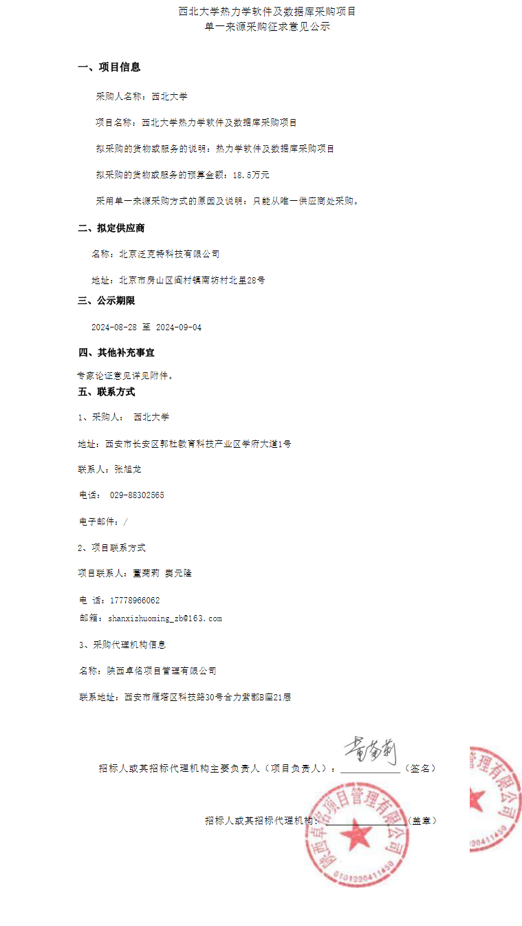 开云网页版登录入口热力学软件及数据库采购项目单一来源采购征求意见公示