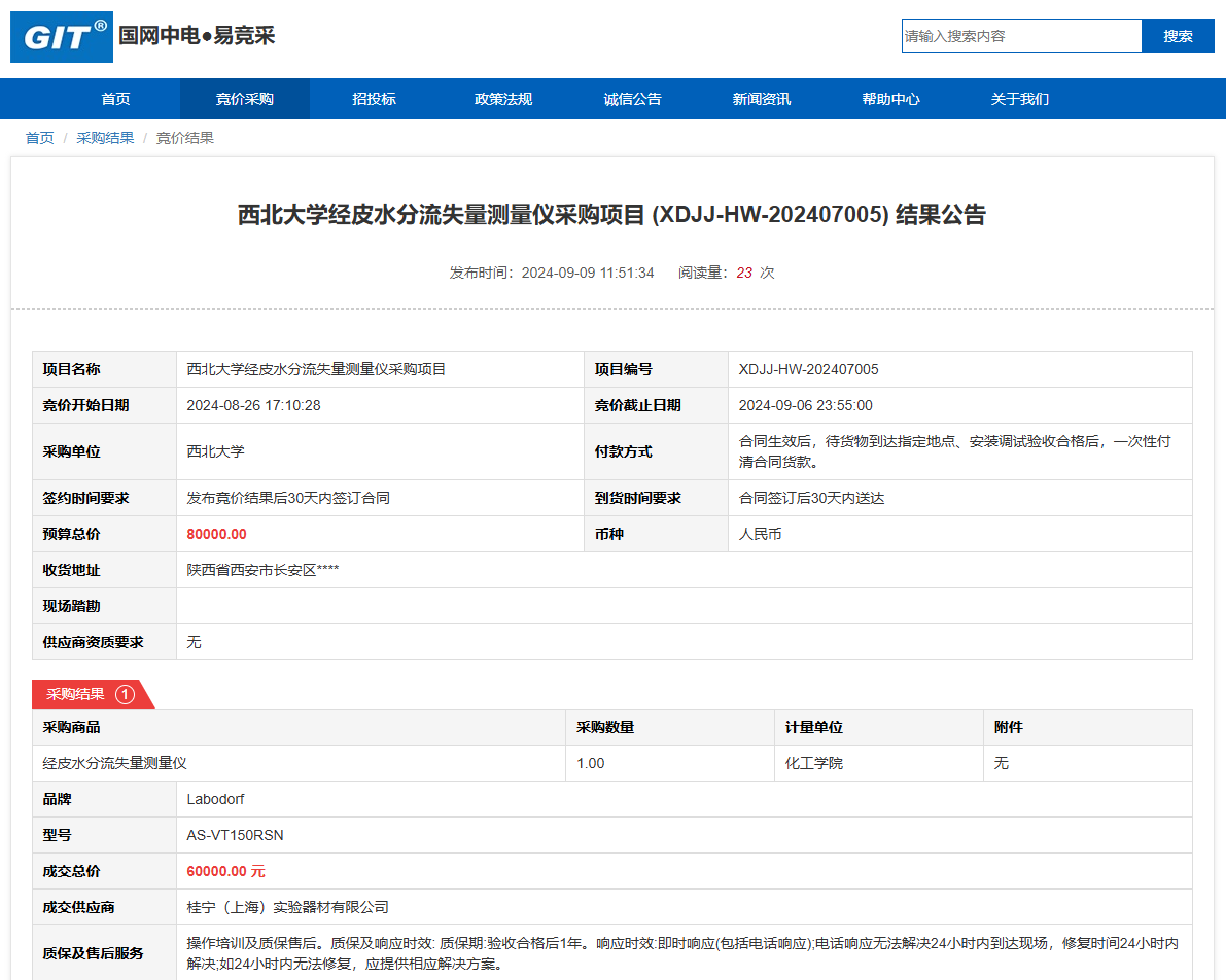 开云网页版登录入口经皮水分流失量测量仪采购项目 (XDJJ-HW-202407005) 竞价结果公告 作者: 编辑: 时间:2024-09-09 原公告链接:https://www.ejingcai.com.cn/site/bidding/detail/12405