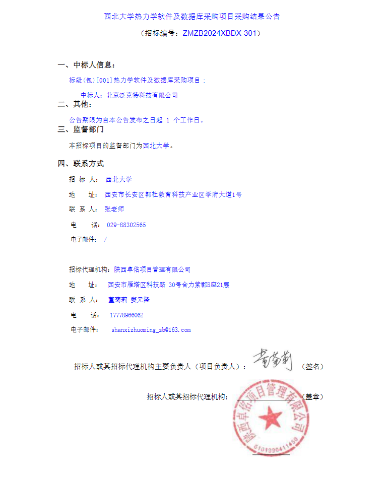 开云网页版登录入口热力学软件及数据库采购项目采购结果公告