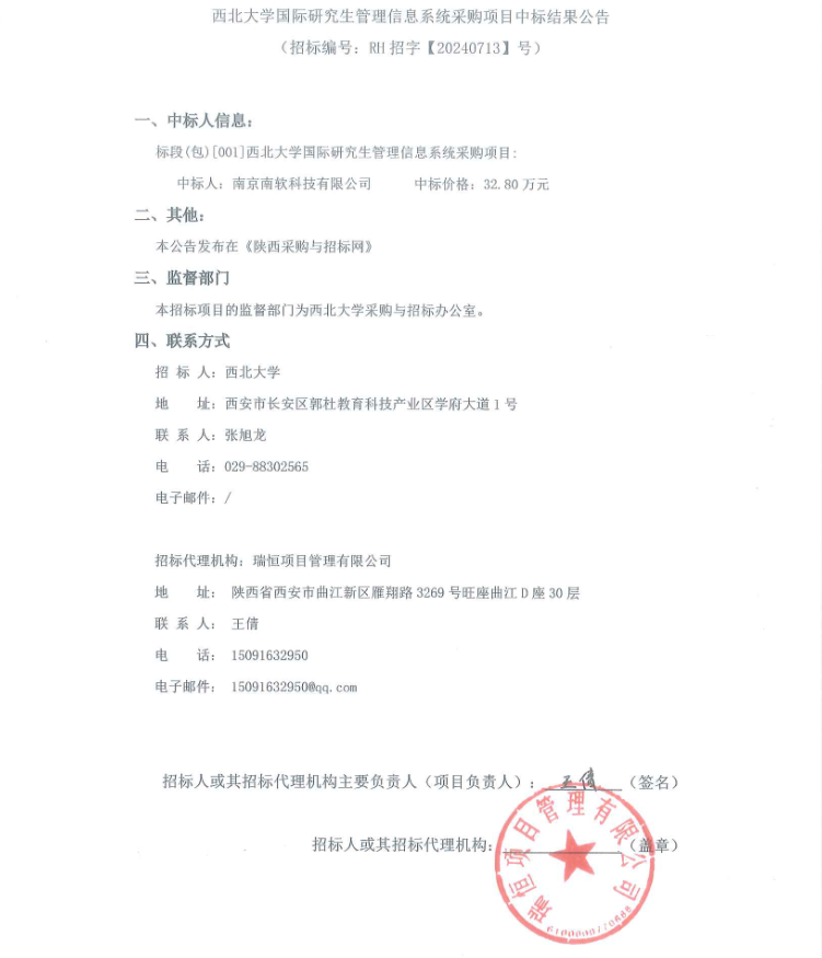 开云网页版登录入口国际研究生管理信息系统采购项目中标结果公告