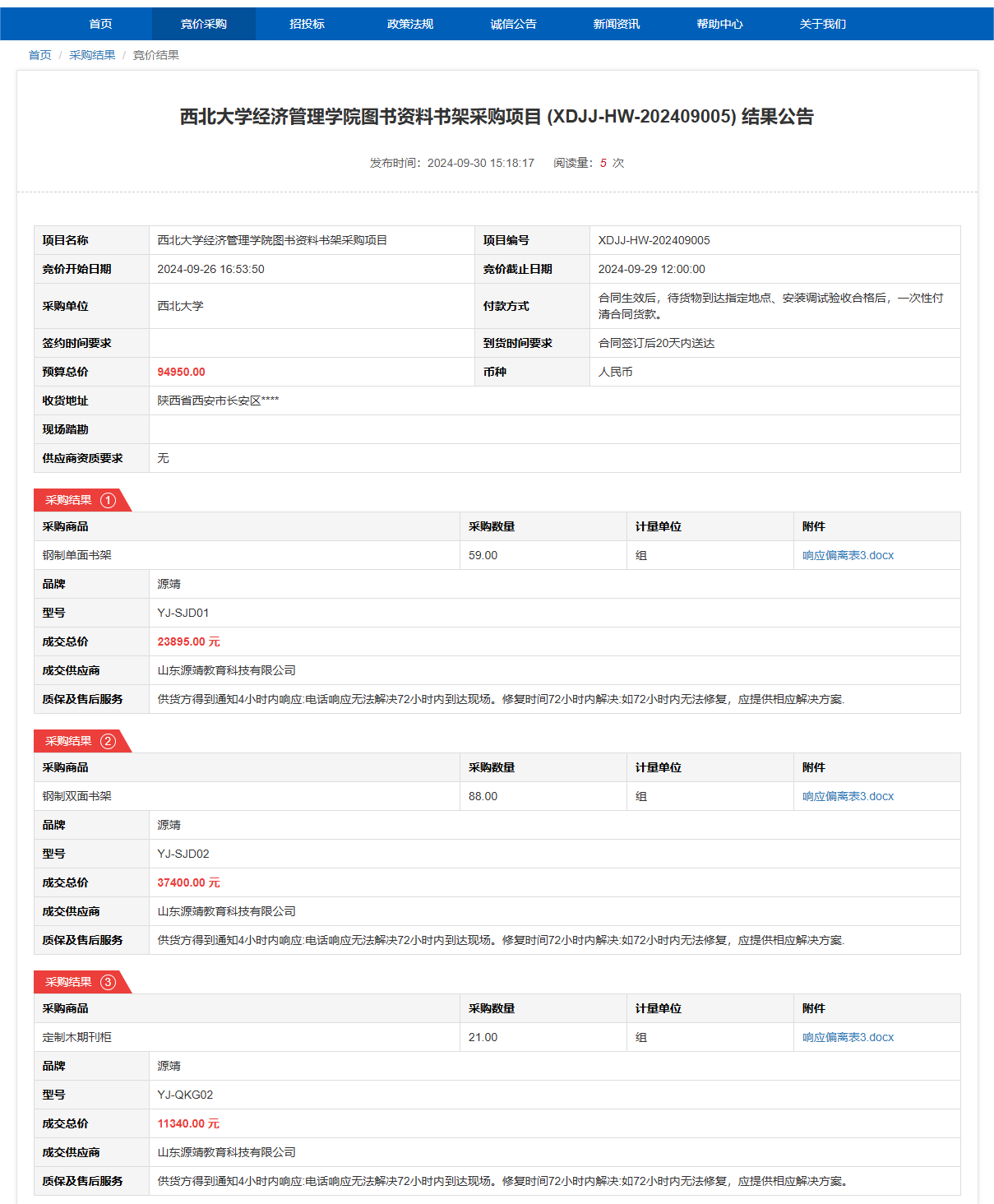 开云网页版登录入口经济管理学院图书资料书架采购项目(XDJJ-HW-202409005)竞价结果公告 作者: 编辑: 时间:2024-09-30 原公告链接:https://www.ejingcai.com.cn/site/bidding/detail/13023