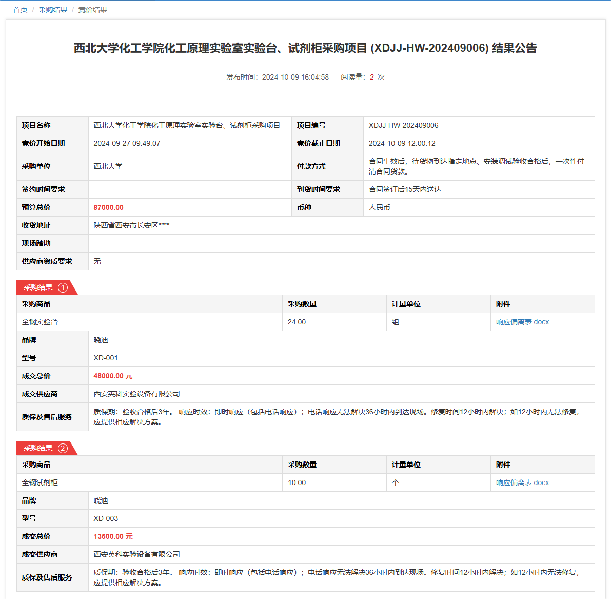 开云网页版登录入口化工学院化工原理实验室实验台、试剂柜采购项目(XDJJ-HW-202409006)竞价结果公告 作者: 编辑: 时间:2024-10-09 原公告链接:https://www.ejingcai.com.cn/site/bidding/detail/13139