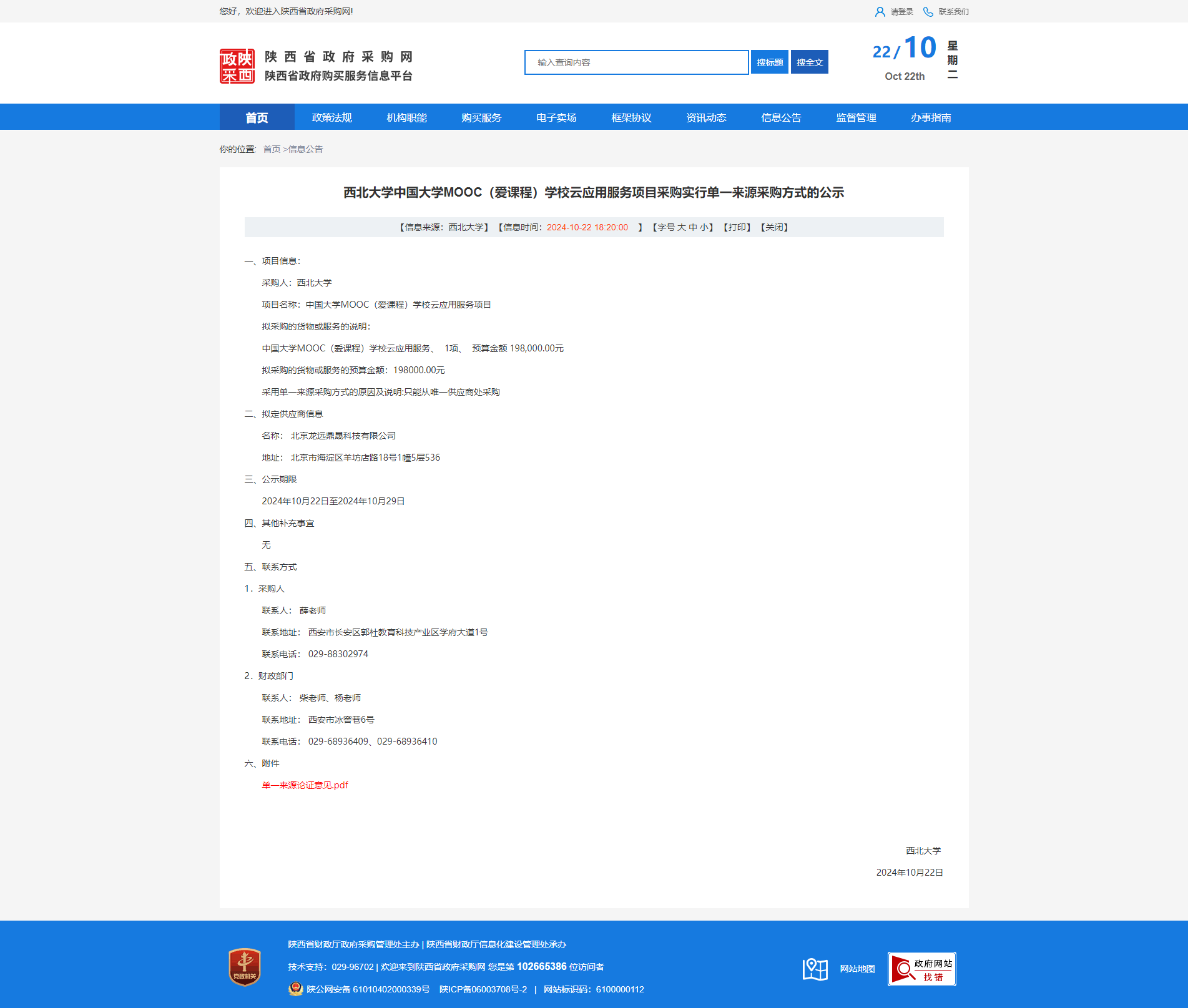 开云网页版登录入口中国大学MOOC(爱课程)学校云应用服务项目采购实行单一来源采购方式的公示