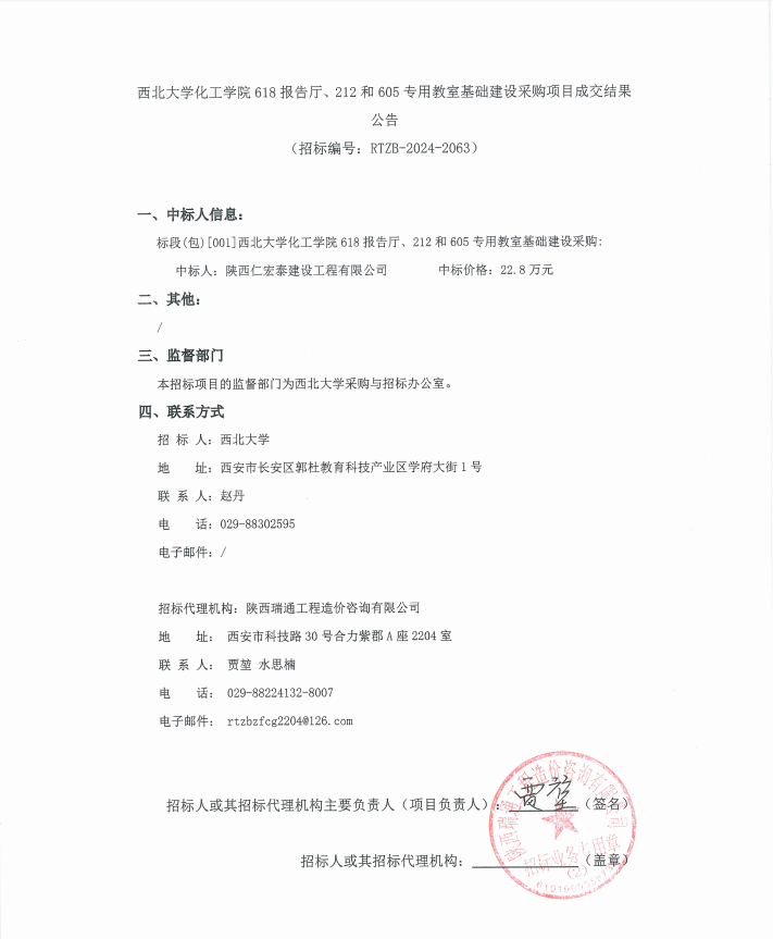 开云网页版登录入口化工学院618报告厅、212和605专用教室基础建设采购项目成交结果公告