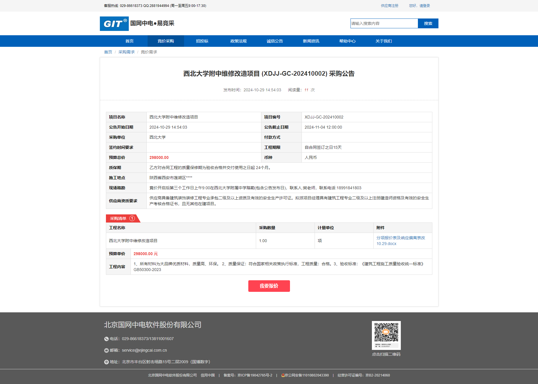 开云网页版登录入口附中维修改造项目 (XDJJ-GC-202410002) 采购公告