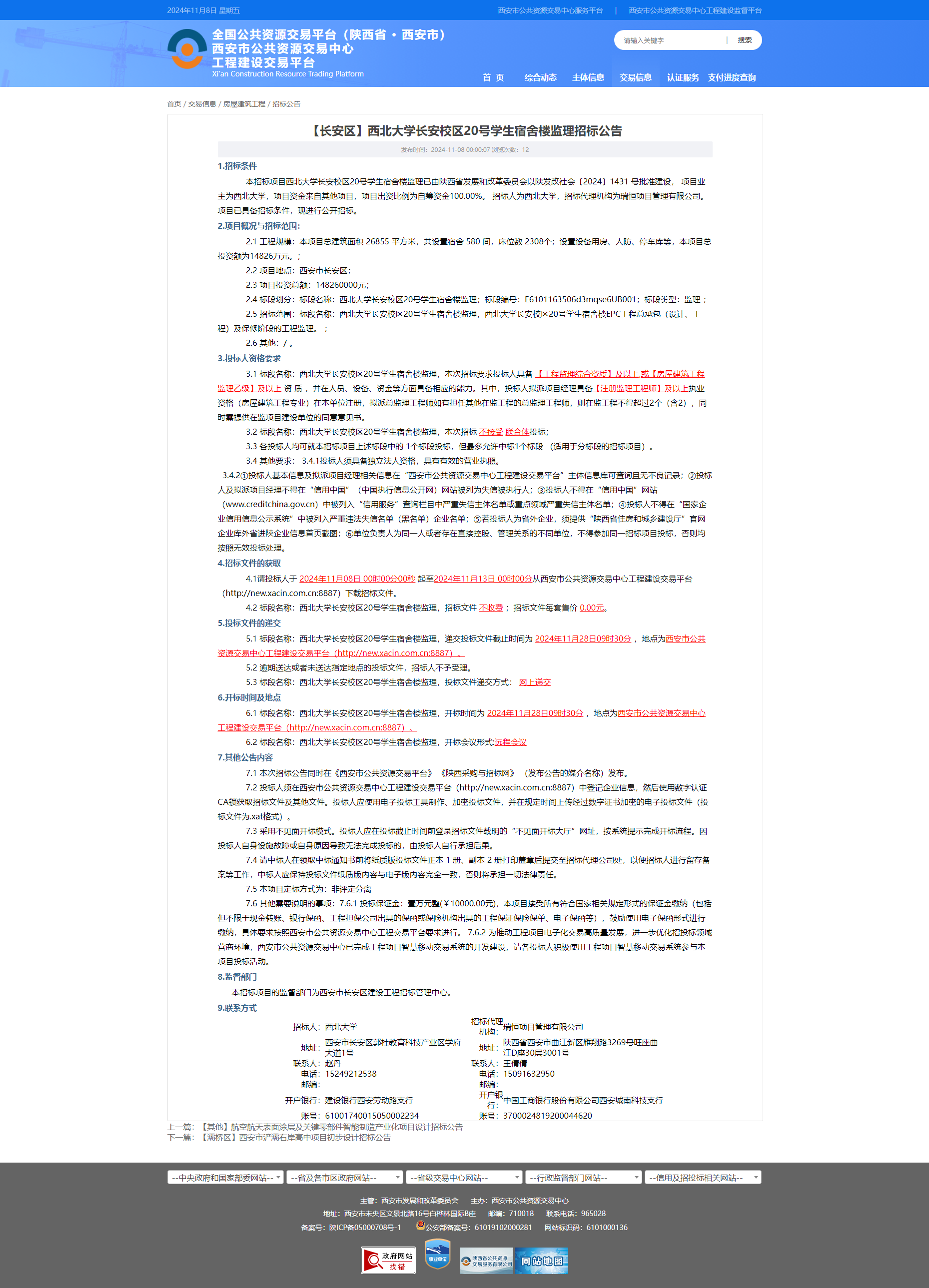 开云网页版登录入口长安校区20号学生宿舍楼监理招标公告