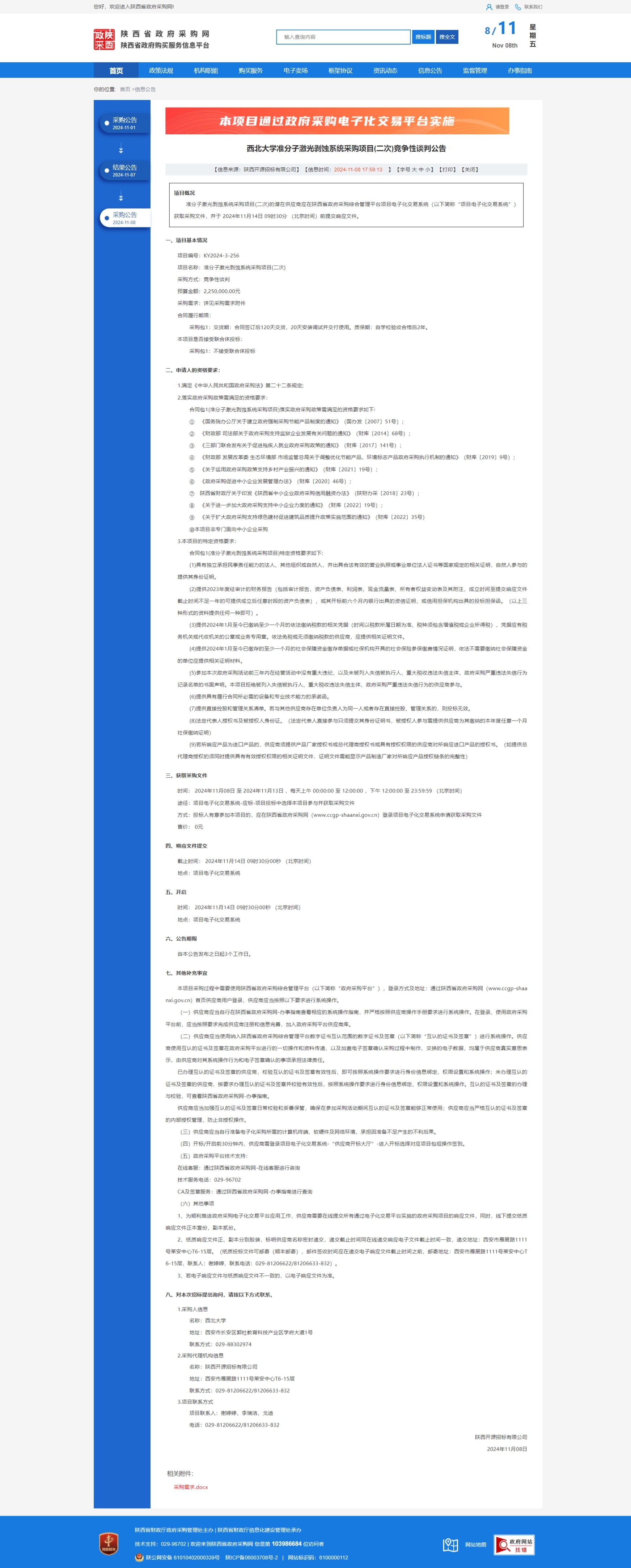 开云网页版登录入口准分子激光剥蚀系统采购项目(二次)竞争性谈判公告 作者: 编辑:薛利娟 时间:2024-11-08 原公告链接:https://www.ccgp-shaanxi.gov.cn/freecms/site/shaanxi/ggxx/info/2024/8a69c44e9218572b01930b11a18f0bb4.html?noticeType=001013¬iceId=aa4ef12c-9db9-11ef-8063-08c0eb20c666