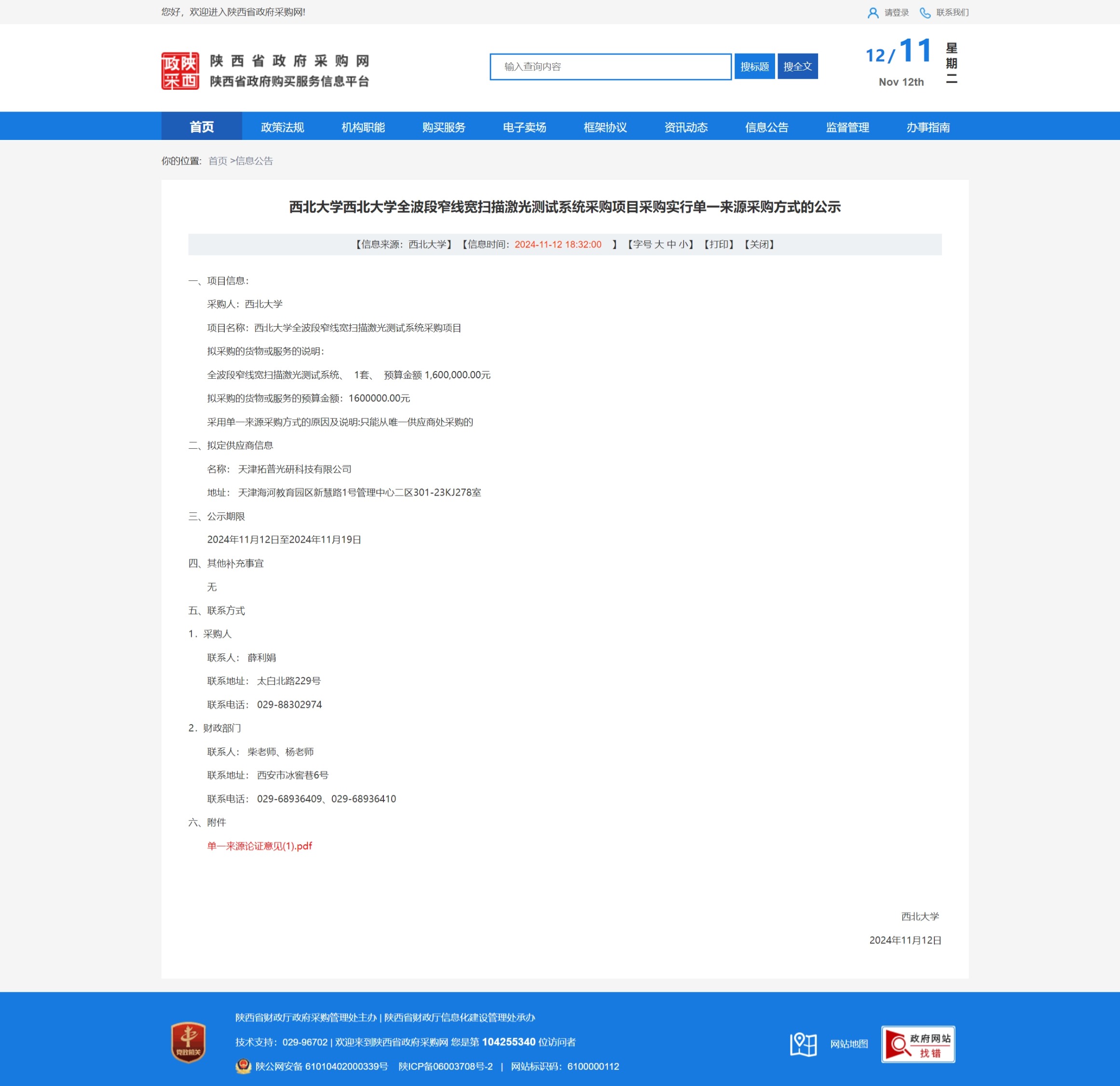 开云网页版登录入口全波段窄线宽扫描激光测试系统采购项目采购实行单一来源采购方式的公示 作者: 编辑:薛利娟 时间:2024-11-12 原公告链接:https://www.ccgp-shaanxi.gov.cn/freecms/site/shaanxi/ggxx/info/2024/8a69c24d91d6105a01931fd0fd6f6828.html?noticeType=001051¬iceId=e9c41b14-a0e2-11ef-8063-08c0eb20c666