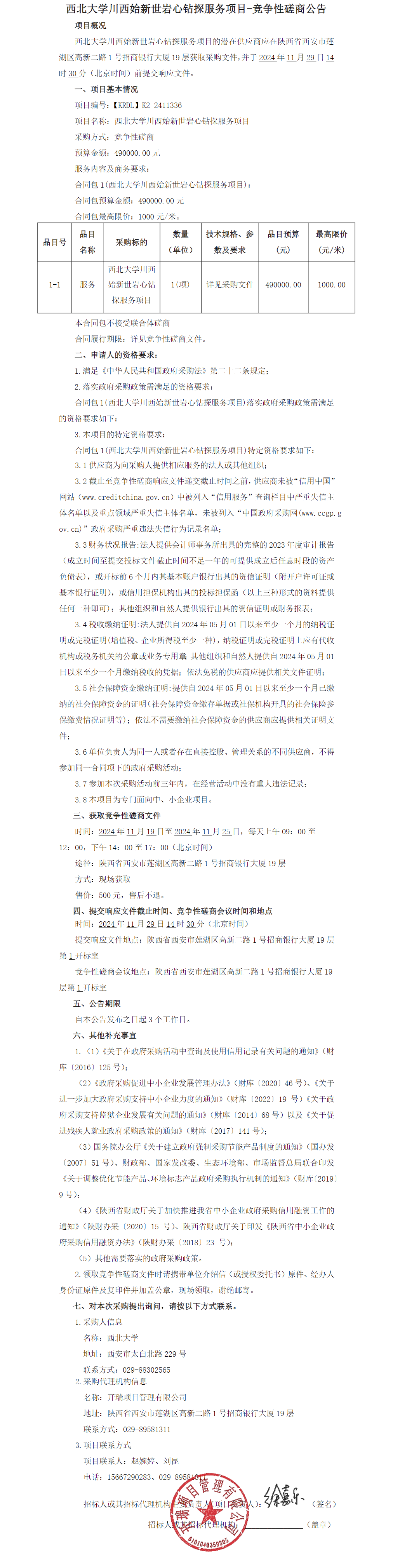 开云网页版登录入口西安市古生物信息学重点实验室岩芯钻取服务项目竞争性磋商公告