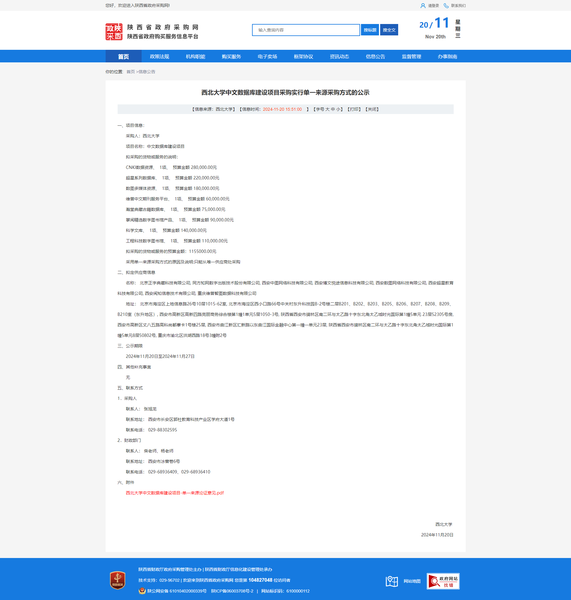 开云网页版登录入口中文数据库建设项目采购实行单一来源采购方式的公示