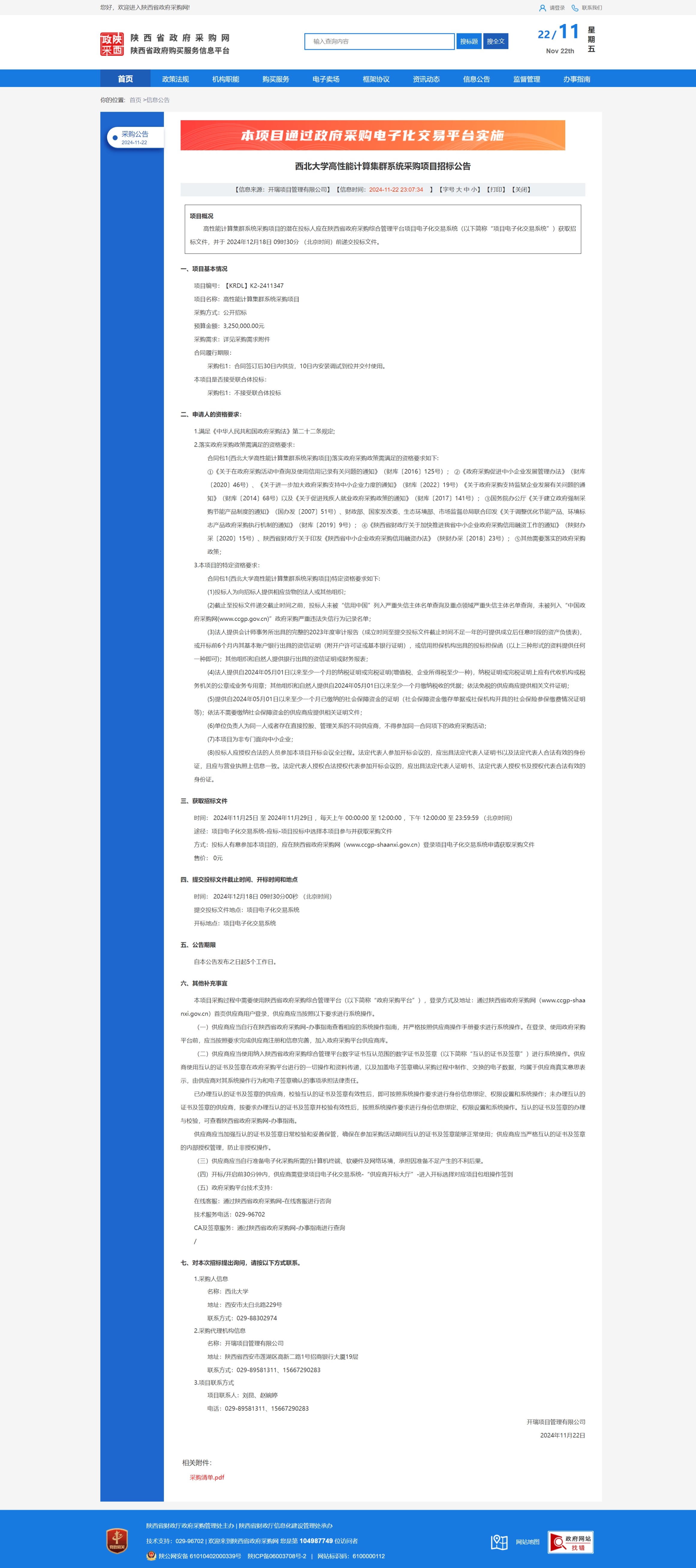 开云网页版登录入口高性能计算集群系统采购项目招标公告 作者: 编辑:薛利娟 时间:2024-11-22 原公告链接:https://www.ccgp-shaanxi.gov.cn/freecms/site/shaanxi/ggxx/info/2024/8a69c5a59218576d0193545f6de719d0.html?noticeType=001011¬iceId=1645c115-a8e5-11ef-8063-08c0eb20c666