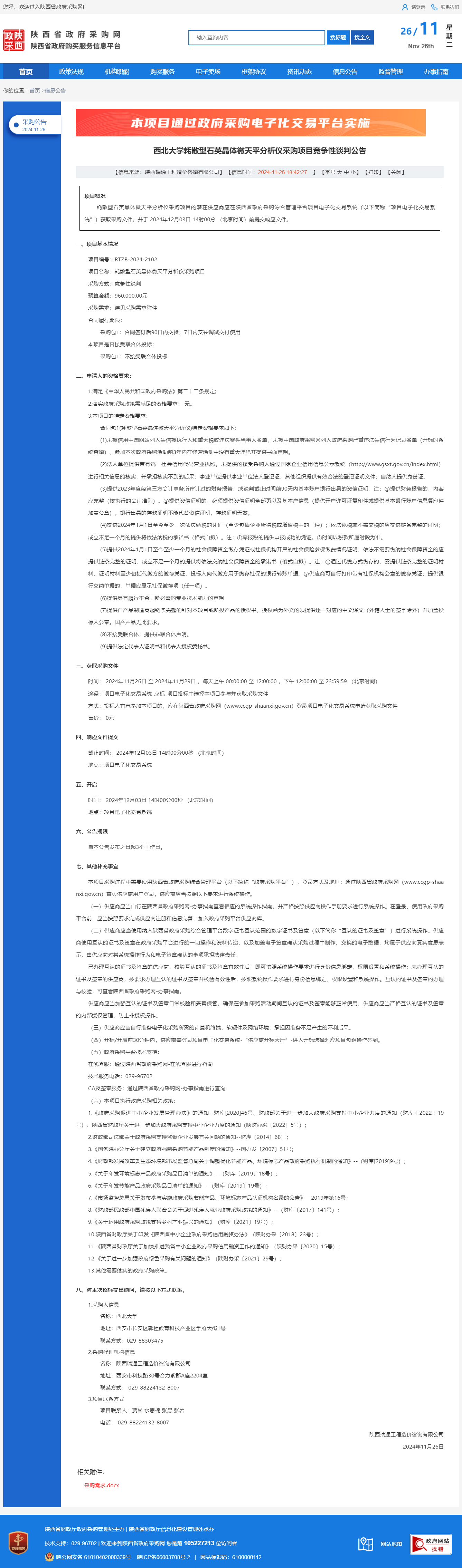 开云网页版登录入口耗散型石英晶体微天平分析仪采购项目竞争性谈判公告 作者:采购与招标办公室 编辑: 时间:2024-11-26 原公告链接:http://www.ccgp-shaanxi.gov.cn/freecms/site/shaanxi/ggxx/info/2024/8a69c251921857370193680865e86269.html?noticeType=001013¬iceId=b80e3459-abe4-11ef-8063-08c0eb20c666