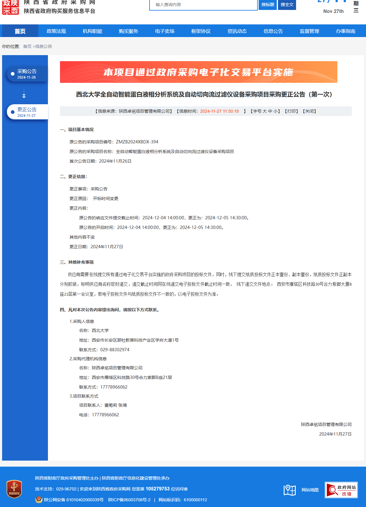 开云网页版登录入口全自动智能蛋白液相分析系统及自动切向流过滤仪设备采购项目采购更正公告 作者:采购与招标办公室 编辑: 时间:2024-11-27 原公告链接:https://www.ccgp-shaanxi.gov.cn/freecms/site/shaanxi/ggxx/info/2024/8a69c44e9218572b01936bbab7481f2c.html?noticeType=001031¬iceId=4f3bb739-ac74-11ef-8063-08c0eb20c666