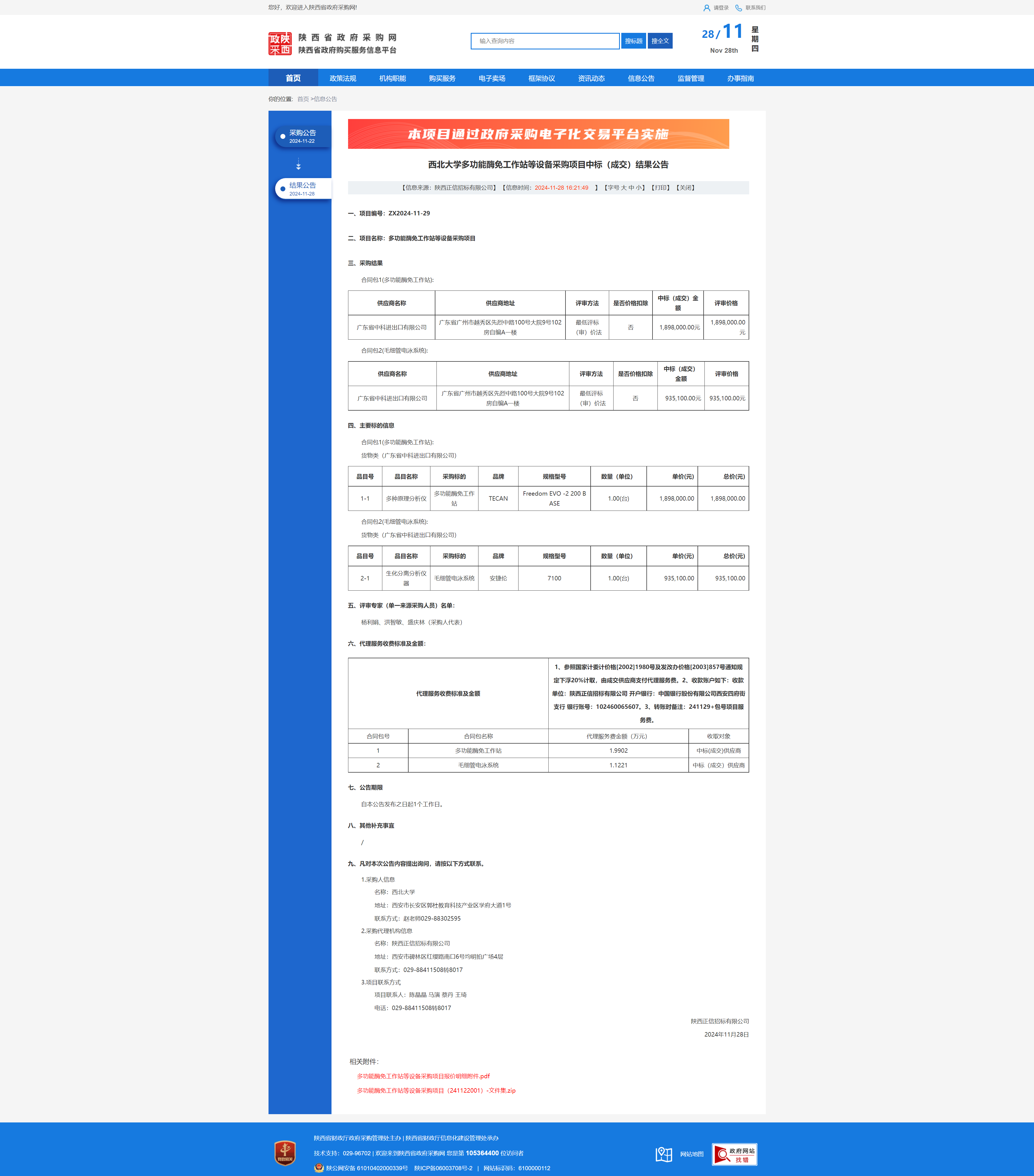 开云网页版登录入口多功能酶免工作站等设备采购项目中标(成交)结果公告
