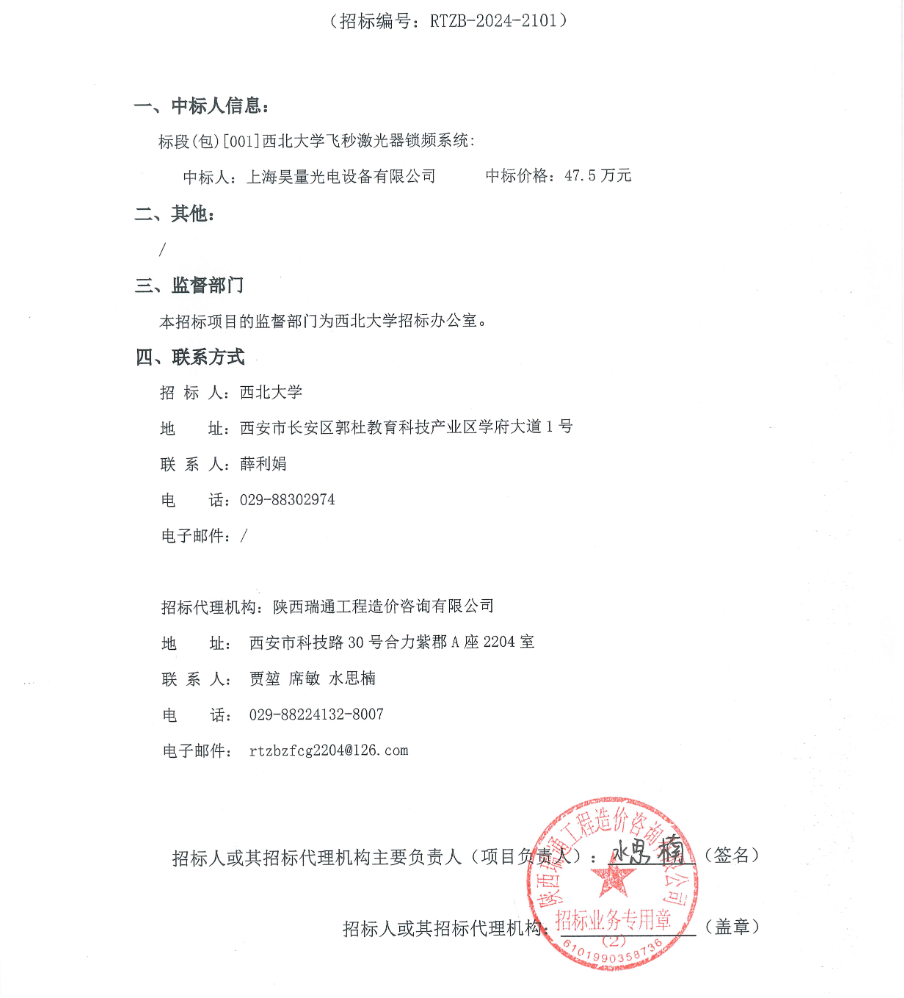 开云网页版登录入口飞秒激光器锁频系统采购项目结果公告 作者: 编辑:薛利娟 时间:2024-12-02 原公告链接:http://bulletin.sntba.com/resultBulletin/2024-12-02/1991782.html