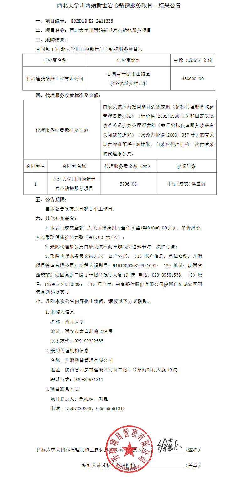 开云网页版登录入口川西始新世岩心钻探服务项目结果公告
