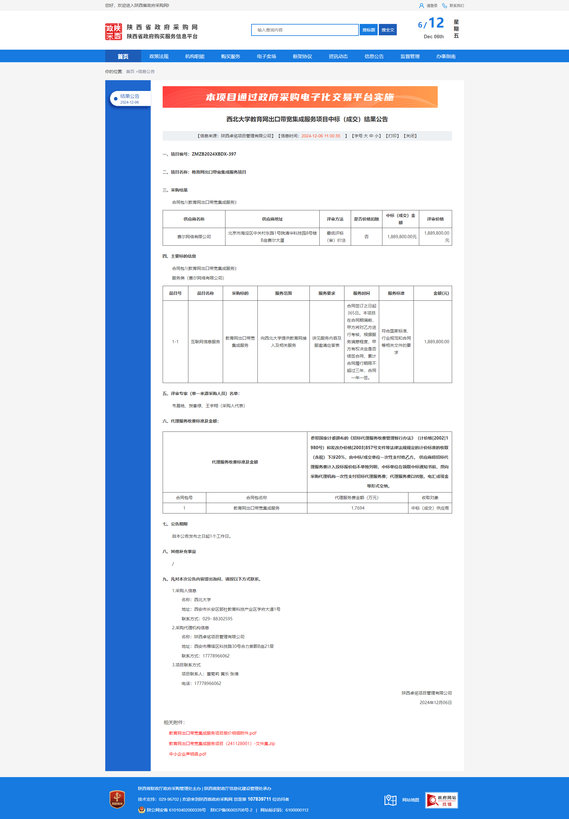 开云网页版登录入口教育网出口带宽集成服务项目中标(成交)结果公告