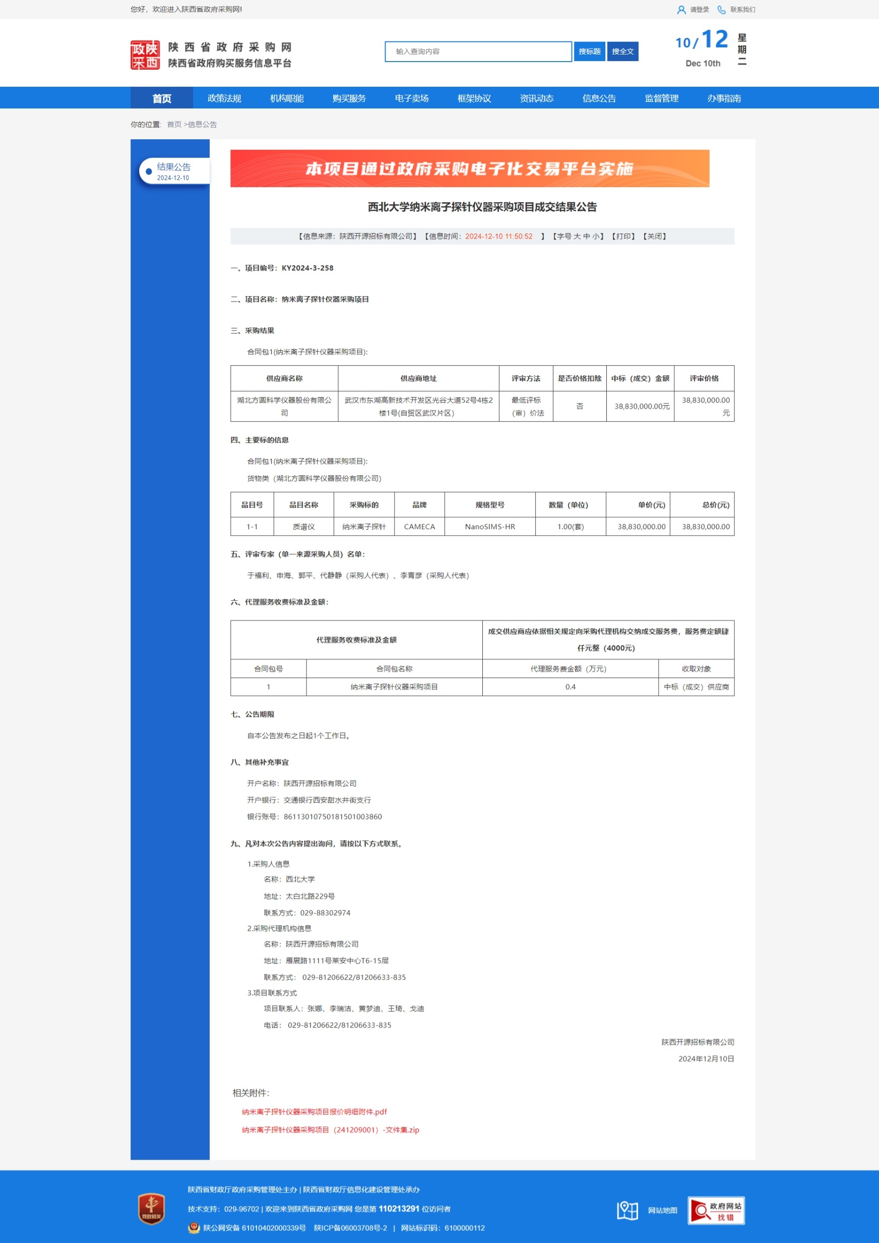 开云网页版登录入口纳米离子探针仪器采购项目成交结果公告 作者: 编辑:薛利娟 时间:2024-12-10 原公告链接:https://www.ccgp-shaanxi.gov.cn/freecms/site/shaanxi/ggxx/info/2024/8a69c5a59218576d0193aea3717402eb.html?noticeType=001025¬iceId=917c05e9-b6ab-11ef-8063-08c0eb20c666