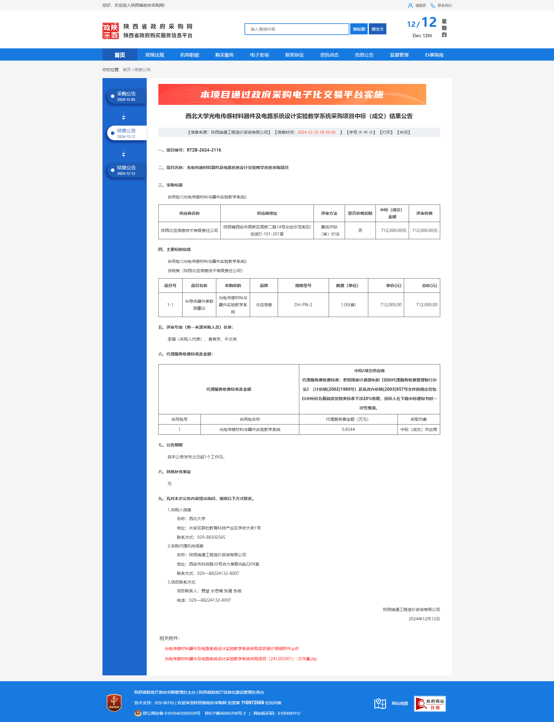 开云网页版登录入口光电传感材料器件及电路系统设计实验教学系统采购项目中标(成交)结果公告