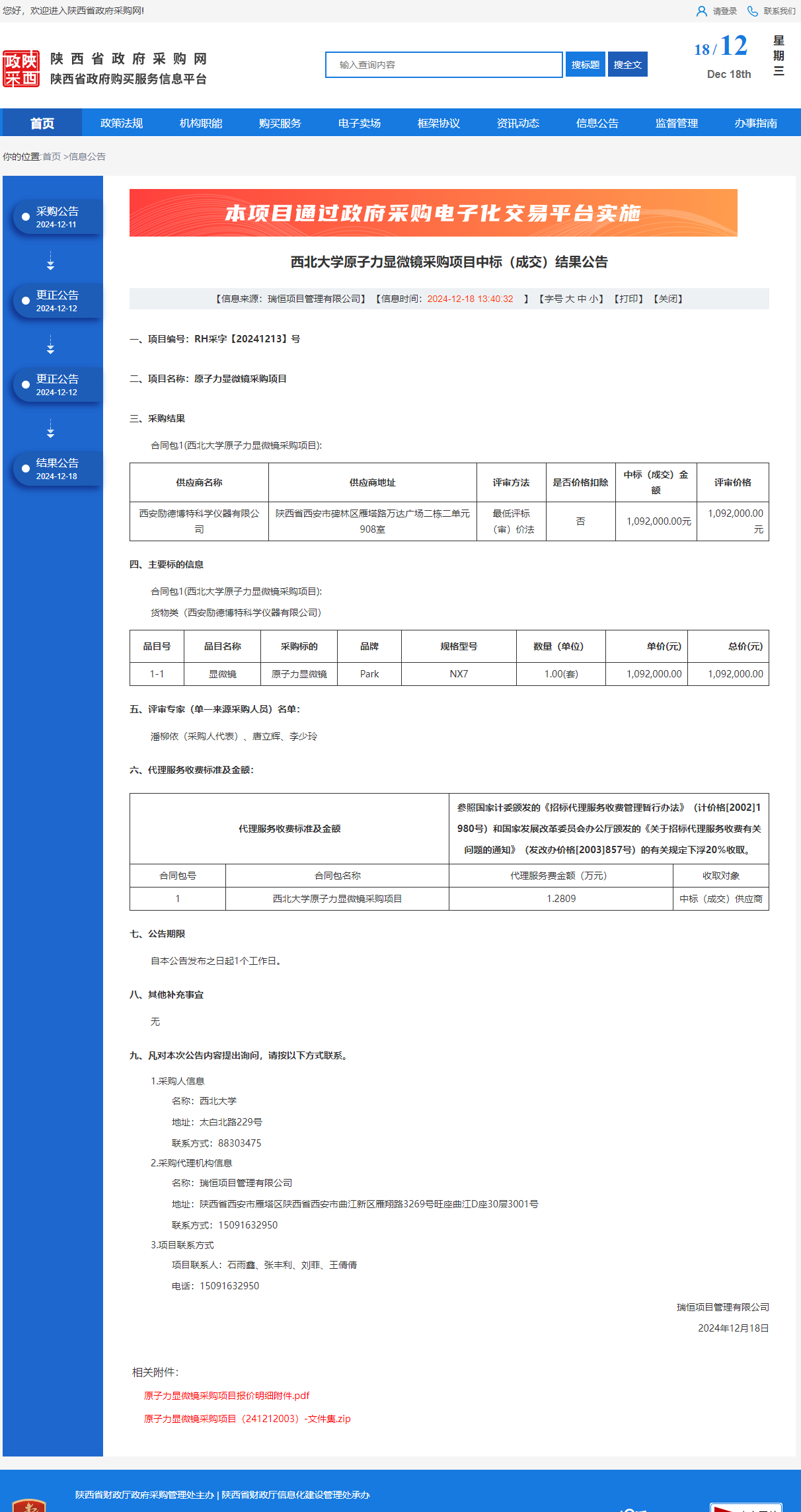 开云网页版登录入口原子力显微镜采购项目中标(成交)结果公告 作者:采购与招标办公室 编辑: 时间:2024-12-18 原公告链接:https://www.ccgp-shaanxi.gov.cn/freecms/site/shaanxi/ggxx/info/2024/8a69c95d921859f00193d84373ad1532.html