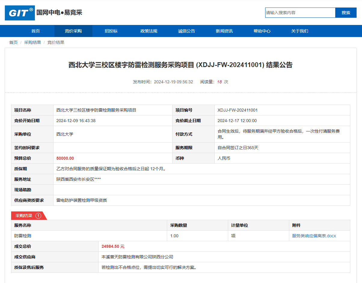 开云网页版登录入口三校区楼宇防雷检测服务采购项目(XDJJ-FW-202411001)竞价结果公告 作者:采购与招标办公室 编辑: 时间:2024-12-19 原公告链接:https://www.ejingcai.com.cn/site/bidding/detail/16077
