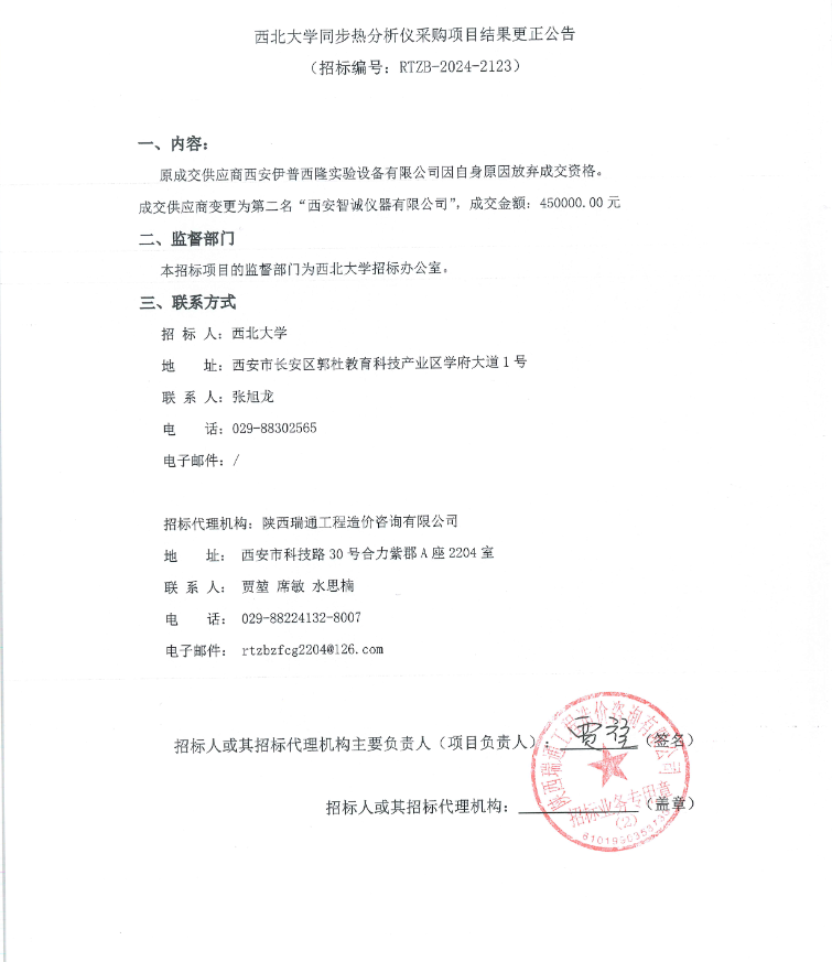 开云网页版登录入口同步热分析仪采购项目结果更正公告