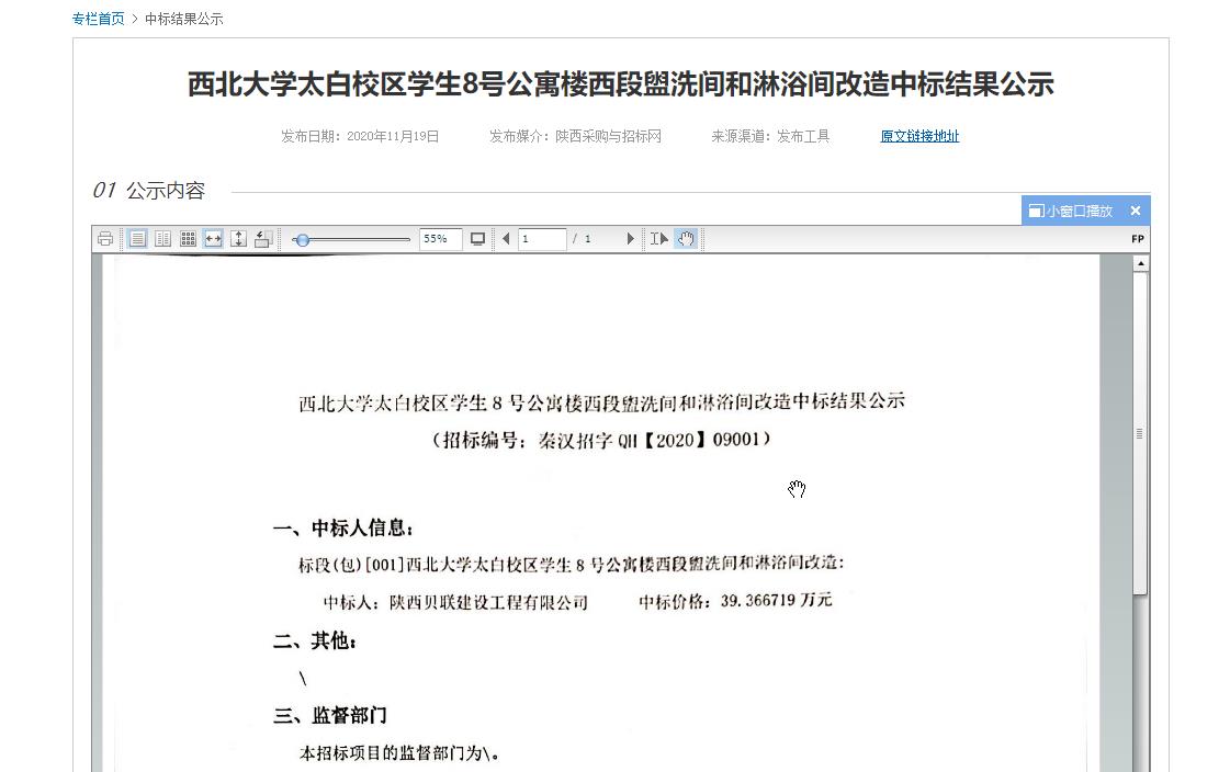开云网页版登录入口太白校区学生8号公寓楼西段盥洗间和淋浴间改造中标结果公示 作者: 编辑: 时间:2020-11-19 原文链接:http://bulletin.sntba.com/resultBulletin/2020-11-19/245519.html