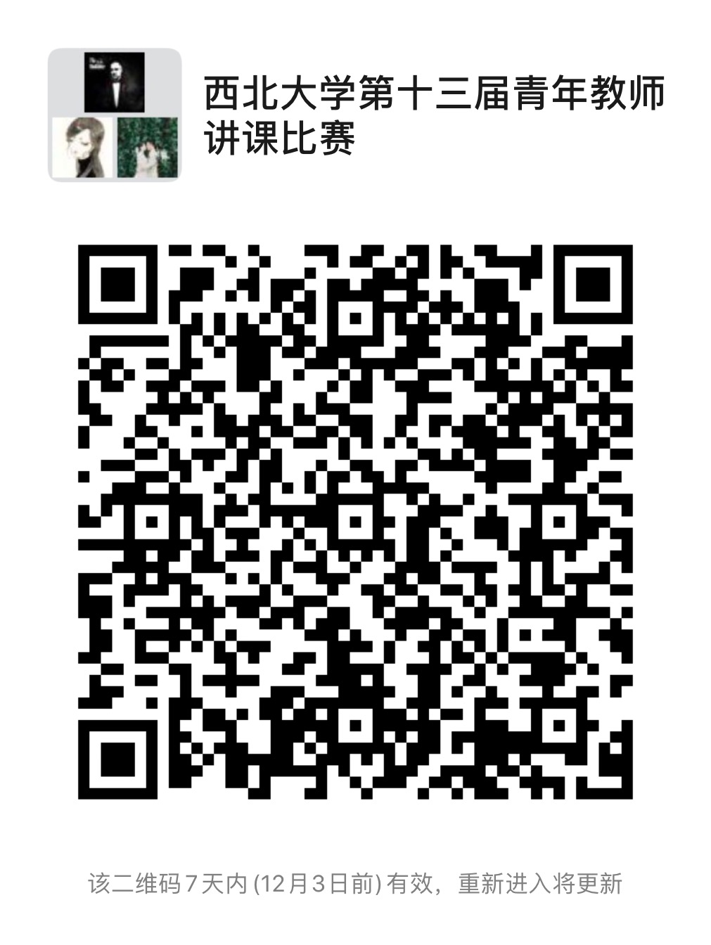 6.请参赛教师扫描下方二维码,加入“开云网页版登录入口第十三届青年教师讲课比赛”微信群,并按照“单位+姓名”格式修改备注名。