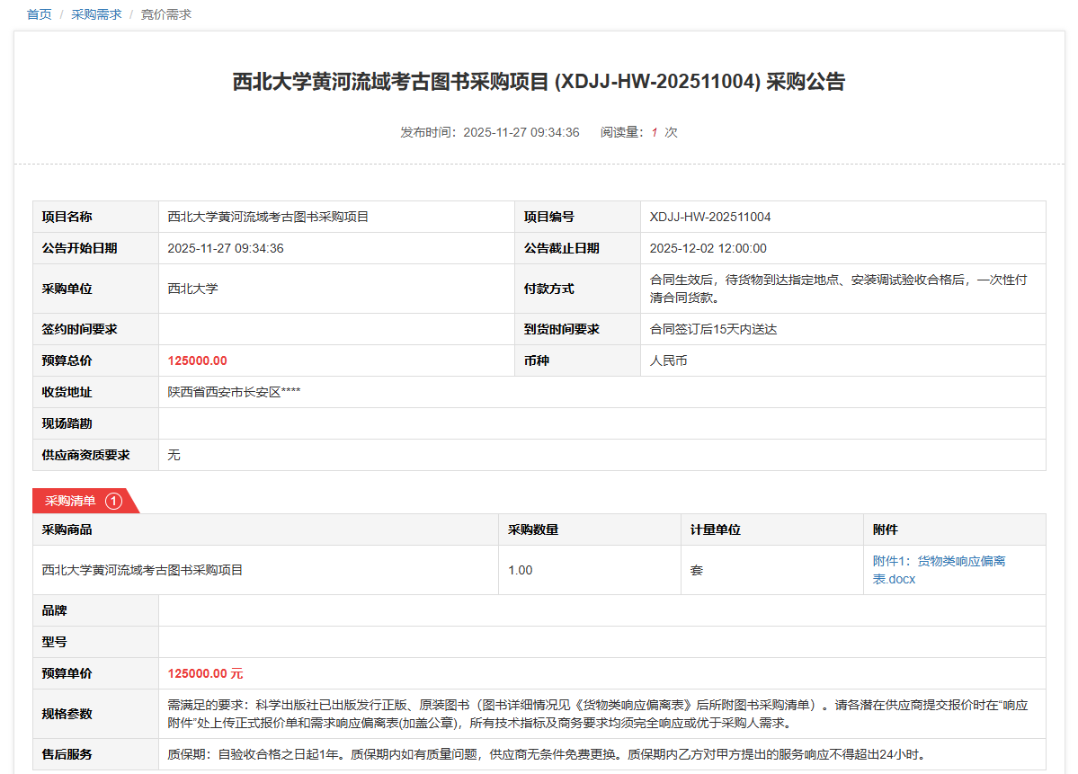 开云网页版登录入口黄河流域考古图书采购项目(XDJJ-HW-202511004)竞价采购公告