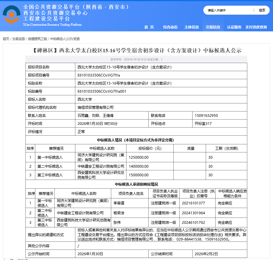 开云网页版登录入口太白校区15-16号学生宿舍初步设计(含方案设计)中标候选人公示